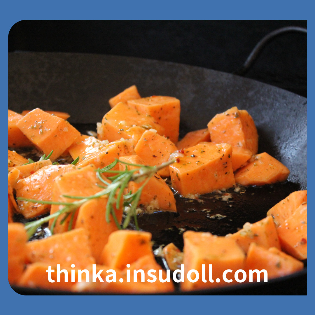 고구마를 튀기거나 설탕, 버터와 함께 조리하면 칼로리가 증가하므로 주의가 필요합니다.