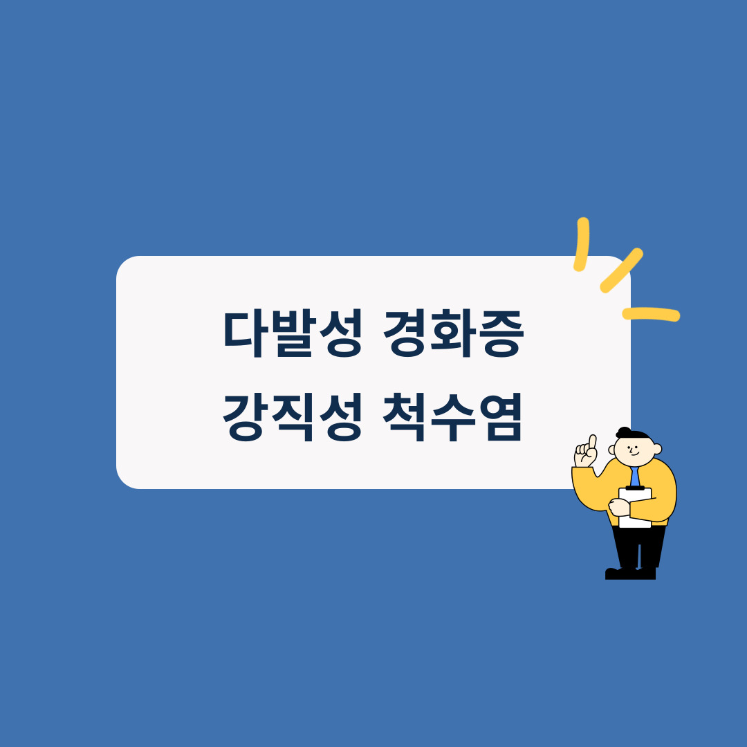 다발성 경화증과 장직성 척수염에 대해서 궁금하신가요? 저도 지인 중에 강직성 척수염 진단을 받으신 사례가 있어서 이것 저것 알아보면서 기억하기 위해서 이번 글을 적습니다. 이번글을 통해서 강직성 척수염과 다발성 경화증에 대해서 자세히 알 수 있으실꺼라 생각합니다.